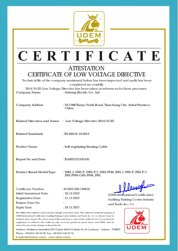 安邦電氣股份有限公司,總部位于北京市長安街,成立于2004年,注冊資金10088萬。安徽生產基地占地面積63000平方米,擁有66套各類生產線,其中進口生產線6套。國家高新技術型企業(yè),滁州市市長質量獎企業(yè),專精特新“小巨人”企業(yè),擁有國家知識產權局授權的45項專利,其中發(fā)明專利28項 , 主筆《太陽能熱利用自限溫電熱帶安裝規(guī)范》行業(yè)標準,參編《自限溫電伴熱帶》國家標準、《工業(yè)和商業(yè)用電阻式伴熱系統(tǒng)》國家標準、《太陽能熱利用自限溫電熱帶》行業(yè)標準、《爆炸性環(huán)境 電阻式伴熱器》國家標準等7項國家標準。企業(yè)通過UL認證,國家強制性 CCC產品認證,ISO9001質量管理體系認證,ISO14001環(huán)境管理體系認證,ISO45001職業(yè)健康安全管理體系認證,Q/SHS0001.1健康、安全與環(huán)境管理體系認證,歐盟防爆ATEX認證,歐盟CE認證,RoHS認證,俄羅斯海關聯(lián)盟認證,國家防爆電氣CCC證書。產品系列:集膚伴熱系統(tǒng)、電伴熱系統(tǒng)、電加熱器、電地暖系統(tǒng)、集儀器儀表、電線電纜、高低壓配電柜(箱)、電纜橋架、閥門管件等等設計、制造、銷售。產品應用于航天航空、軍工、石油、石化、天然氣、機場、化工、鋼鐵、隧道、消防、養(yǎng)殖、融雪化冰、室內供暖、國家電網及眾多電廠等等國家重點工程。出口美國、英國、德國、俄羅斯、韓國、日本、哈薩克斯坦、烏克蘭、伊朗等眾多國家。